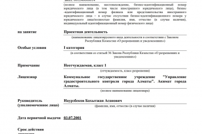 Лицензия 1-ой категории на проектную деятельность