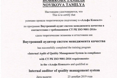 требованиям ISO 9001-2016 (ISO 9001:2015)